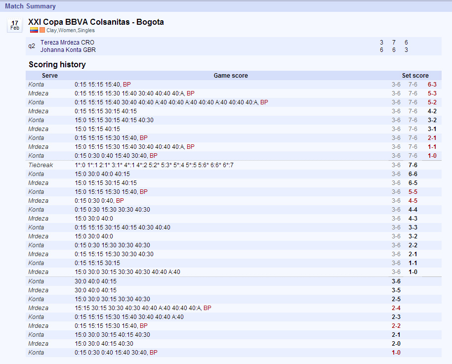 10:00 Shuai Zhang - Johanna Konta tip: Zhang @1.99 (4,5u)Konta je výrazný mentální trpaslík (důkaz např. zde http://4.bp.blogspot.com/-ZVxuuxPBlAA/U ... /tip49.jpg). V tomto zápase podávala na vítězství ve druhém setu, ale selhala. Následně v tie breaku vedla 5:2 a 6:5, aby ho prohrála 6:8 a následně se složila ve třetím setu. Její hlavní zbraní je první servis. Často u ní však bývá výrazným problémem jeho trefování, zejména v klíčových momentech. Její čísla prvního servisu v kurtu bývají obvykle někde mezi 50 a 55%. Kam tím mířím je to, že její druhý servis je samozřejmě zranitelný, dá se přes něj hrát a Zheng je se svým útočným arzenálem schopná toho velice dobře využít. Navíc Konta celkově ke svojí agresivnější hře potřebuje co nejrychlejší podmínky, které ji čínský pomalý hard v Guangzhou nenabízí.